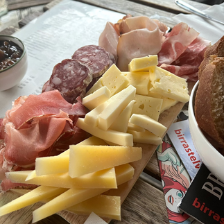Schon ist die Woche fast vorbei. Es regnet immer noch. An eine Wanderung ist nicht zu denken. Also gehen wir am Nachmittag nochmals in die Stadt in die Bar Ponte del Mera. Wir sitzen direkt über der Mera. Auf dem Balkon unter dem Sonnenschirm der den Regen abhält und bestellen eine kleine Vesperplatte. Zuerst kommt eine sehr kleine Portion im Bild unten links. Auf Nachfrage stellt sich das Missverständnis heraus: Das war nur etwas Salami und Käse zum Aperitivo. Dann legt sich der Wirt ins Zeug und es kommt eine sehr ordentliche Portion aus der Küche.