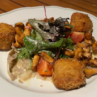Wir haben uns für Lachsforellentatar, Kalbskopf mit Pfifferlingen, Wiener Schnitzel mit Kartoffelsalat und Lammkeule mit Bohnen und Kartoffelgratin entschieden und als Wein den Gutedel des Weinguts Am Klotz, ein sehr spezieller Gutedel.