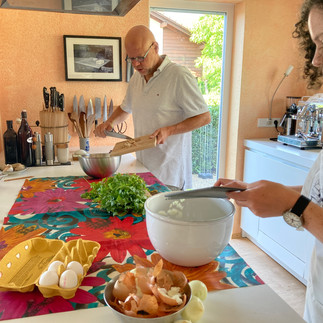 Es geht los mit dem schnippeln. Dann den Teig machen mit Dunst oder wie hier mit dem "Semola di grano duro". Dann die Nudelmaschine sicher befestigen und den Teig gleichmässig dünn auswellen.
