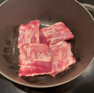 Die Rippchen in einem Bräter nicht allzu scharf anbraten, gelegentlich wenden.
