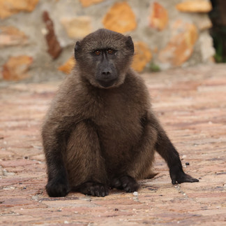 Dann waren die Paviane wieder zu "Besuch". Die Mutter futtert Beeren neben der Terrasse. Das Baby sitzt neben dem Auto. Der Vater hat alles im Blick. Diesmal steht das Auto besser und wird nicht als Landeplatz missbraucht. Ist in der Nähe nicht so lustig.